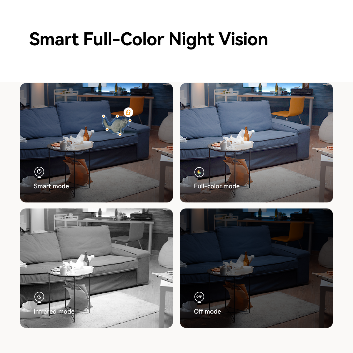 Smart Full-Color Night Vision allows the camera to switch automatically to color mode in low-light conditions, providing better visibility at night.