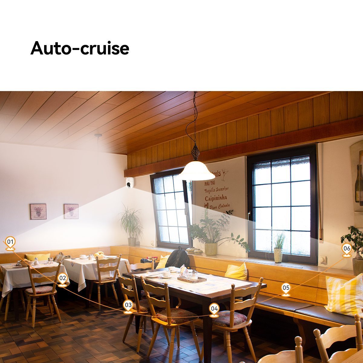 The camera rotates up to 355° and tilts up to 80°, allowing you to monitor the entire space with a single device and eliminate blind spots.