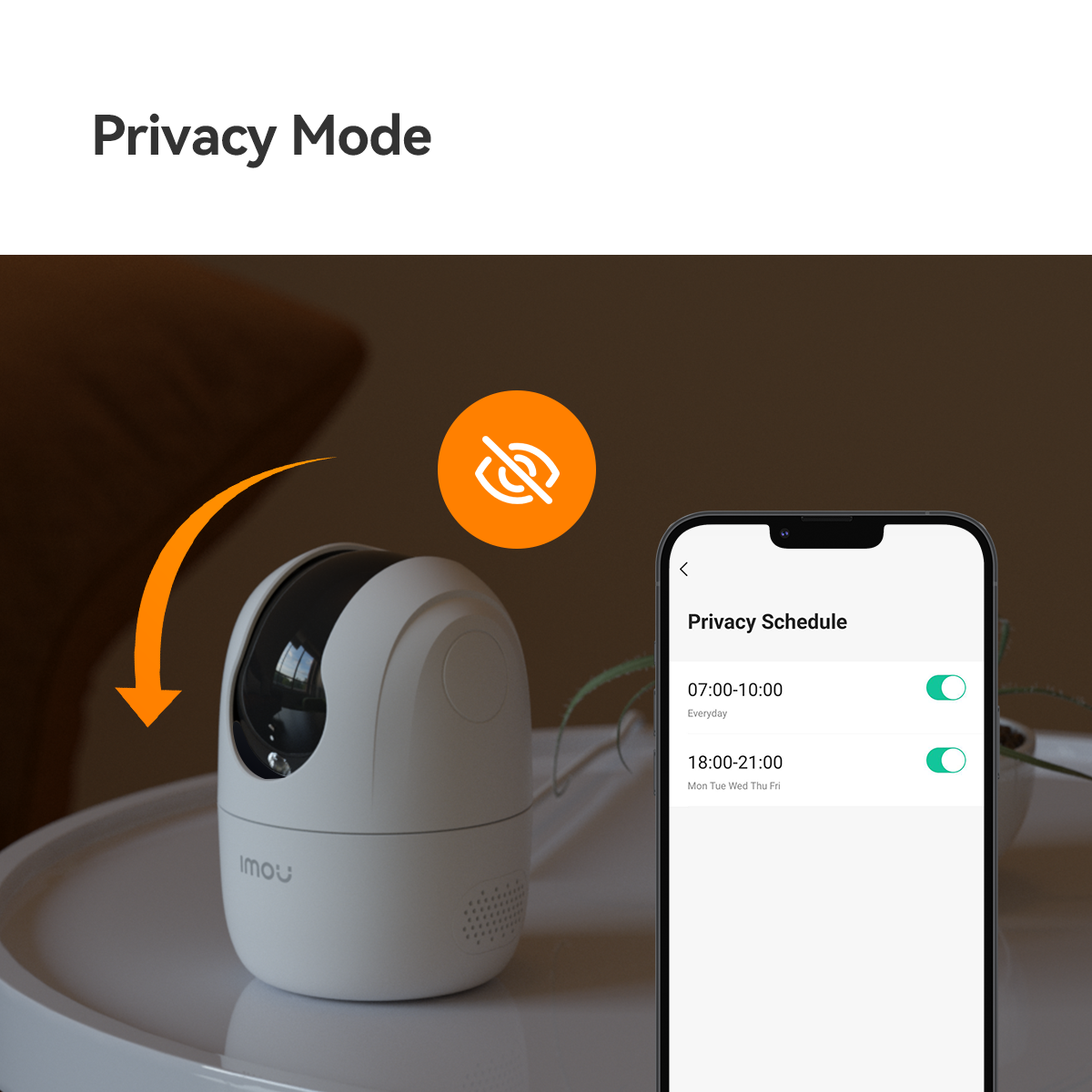Privacy Mode hides the lens when you want to temporarily stop recording.
