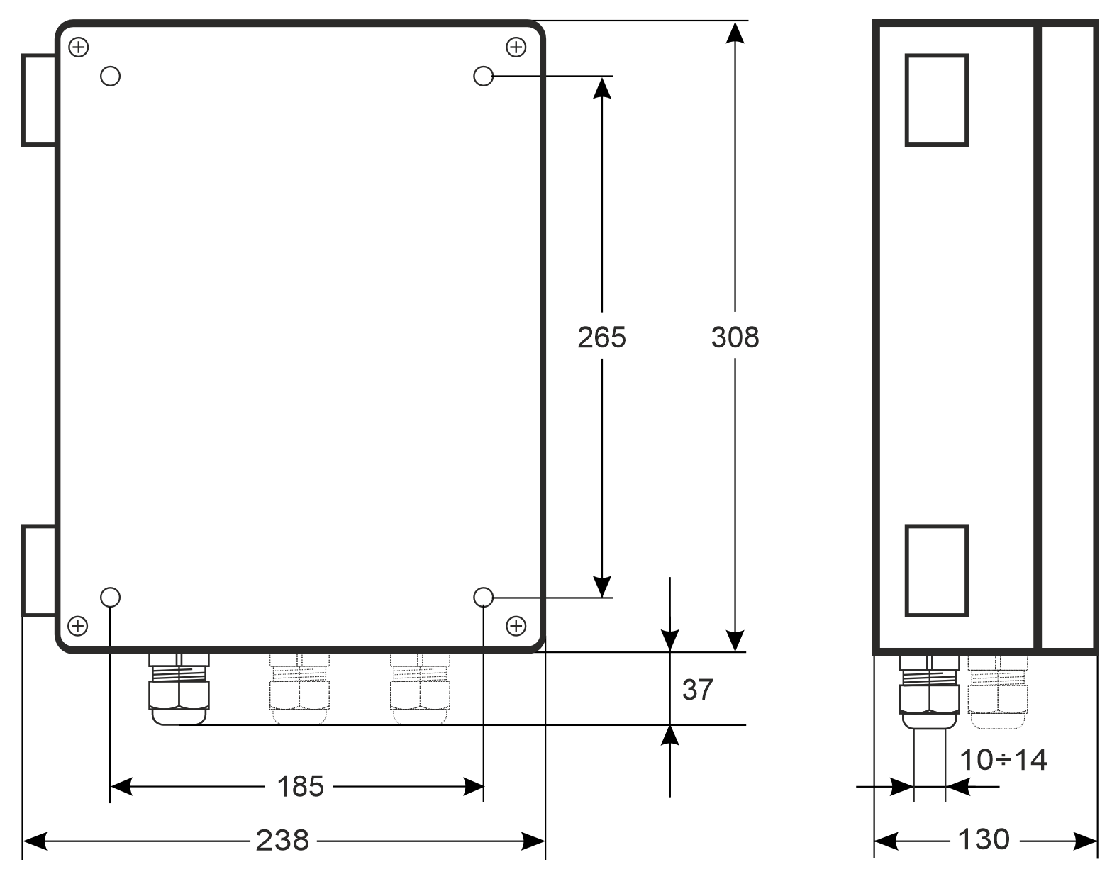 • Kaablisisendid kaabliühendustega, tagavad juhtmete korrektse sisestamise korpusesse