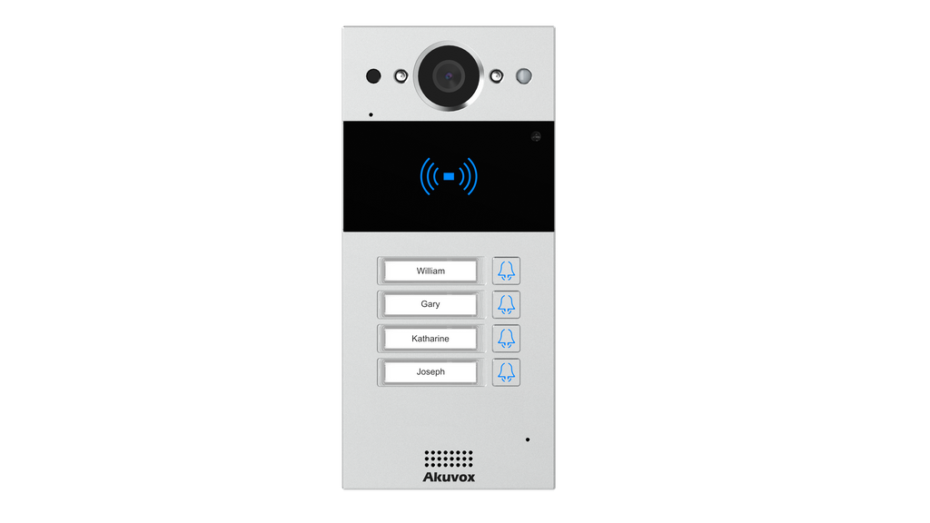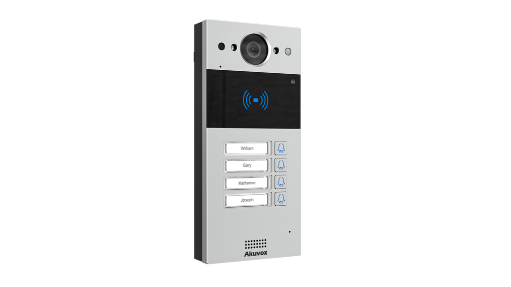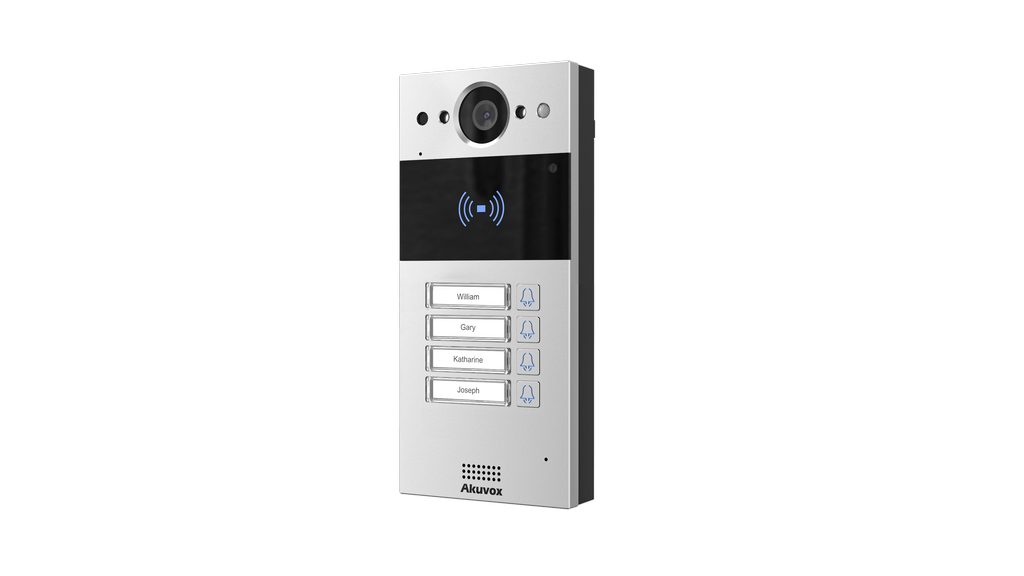 Akuvox R20BX4 on kompaktne SIP video uksekell, millel on neli eraldi kutsenuppu koos nimelipikutega.