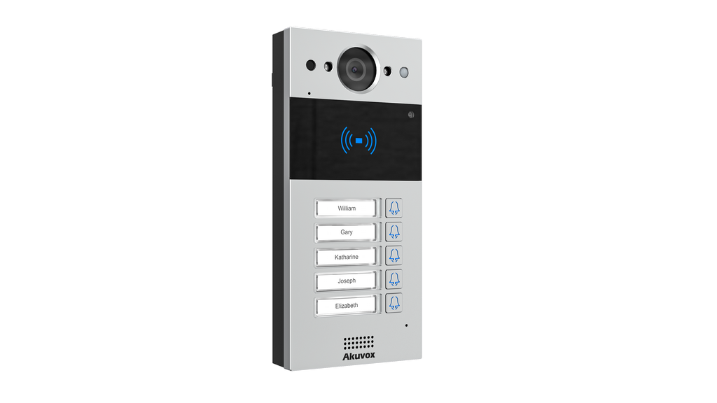 Akuvox R20BX4 on kompaktne SIP video uksekell, millel on viis eraldi kutsenuppu koos nimelipikutega.